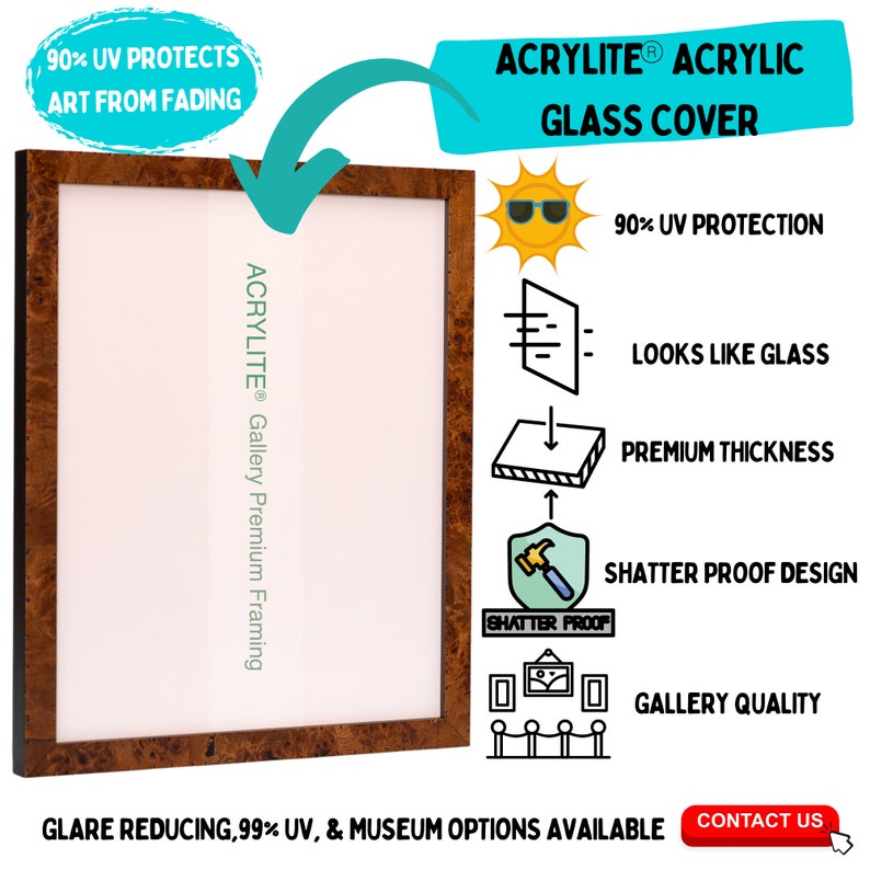 2. All of our frames are made to order. Returns and exchanges are generally not allowed, but if accepted, it must be within 7 days of being received, and up to a 50% restocking fee can be charged. No returns on custom orders, matting, peeled acrylic glass, or international orders. Buyer is also responsible for return shipping.
