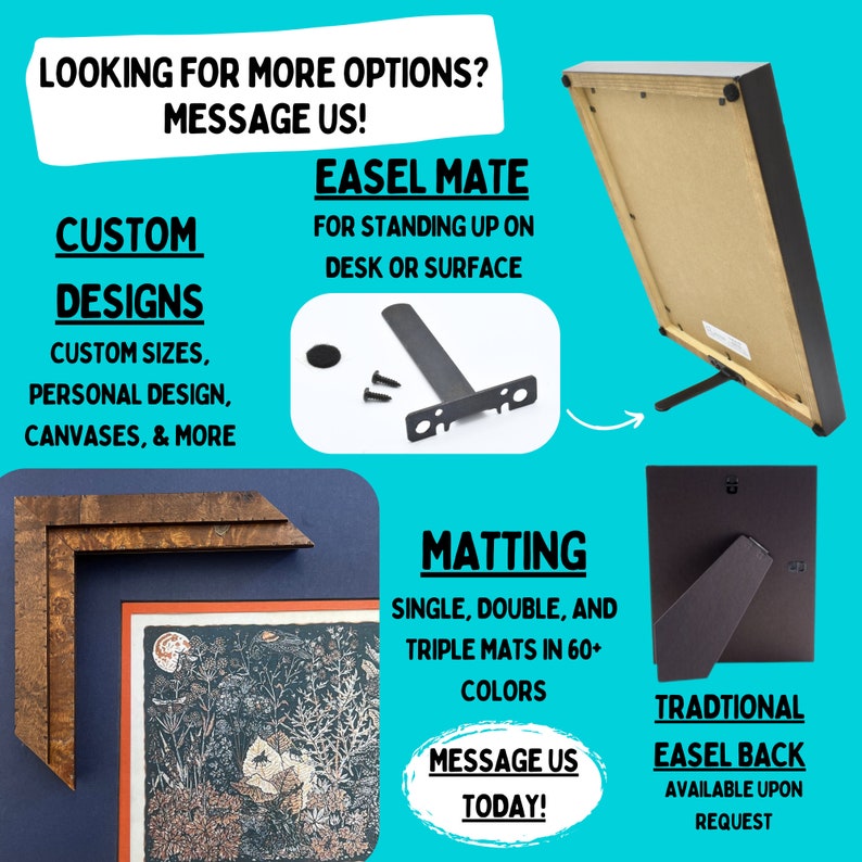 7. If you would like to prop your frame up on a surface select the easel mate option or add the separate easel back listing to your purchase.