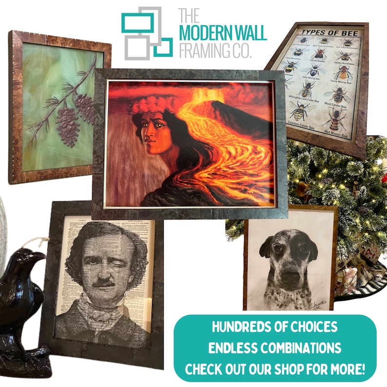Beloved for its unique, abstract graining, burl wood furniture is experiencing a revival of the best kind. Our framers use those flaws in the wood to its advantage to create a beautiful frame that will accent your art and give it a natural feel.